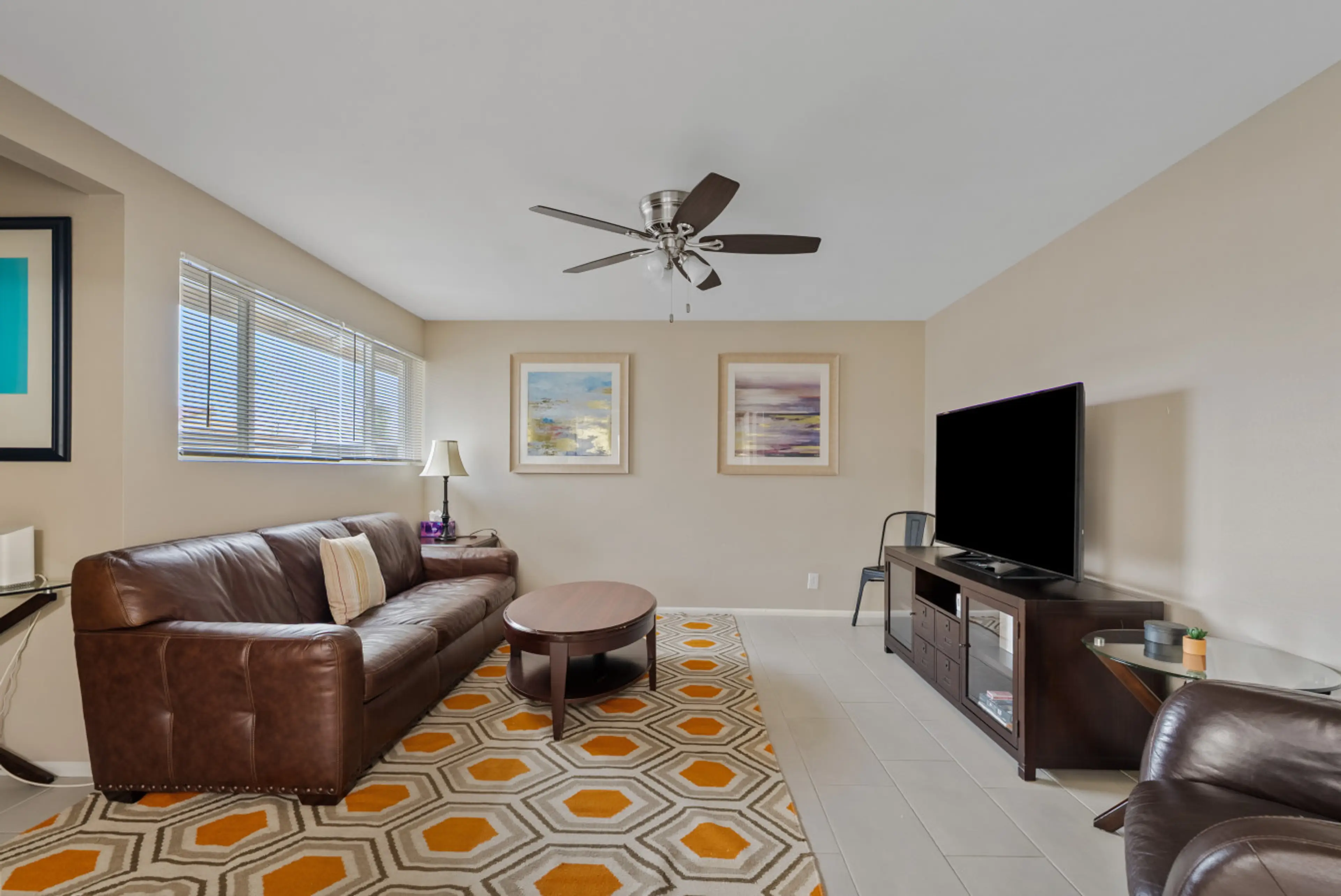 Clean, well-maintained, family-friendly single level 2BR/1BA condo (no stairs), part of a triplex. Spacious open concept living / dining room, King and Queen beds. Our building has its’ own parking and each condo has a private entrance and private patio. Walkable to Downtown Mesa, Valley Light Rail...